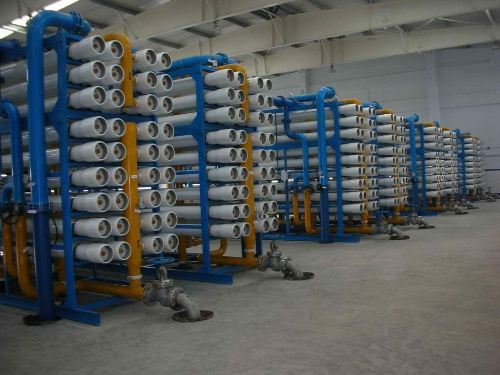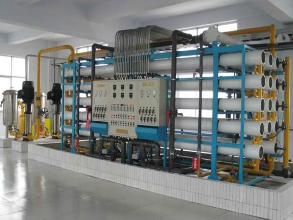 二、反渗透脱盐装置: 反渗透是一种以压力梯度为动力的膜分离过程,其如同分子过滤器一样可有效地去除水中的溶解盐类胶体细菌和有机物。反渗透过程是自然渗透的逆过程.在使用过程中为产生反渗透过程需用水泵将含盐水溶液施加压力以克服其自然渗透压,从而使水透过反渗透膜.而将水中溶解盐类等杂质阻止在反渗透膜的另一侧;同时为防止原水中溶解盐类杂质在膜表面聚焦,运行时浓水应不断地冲洗膜表面并将浓水中及膜面上的杂质带出继而实现反渗透除盐净化的全过程。